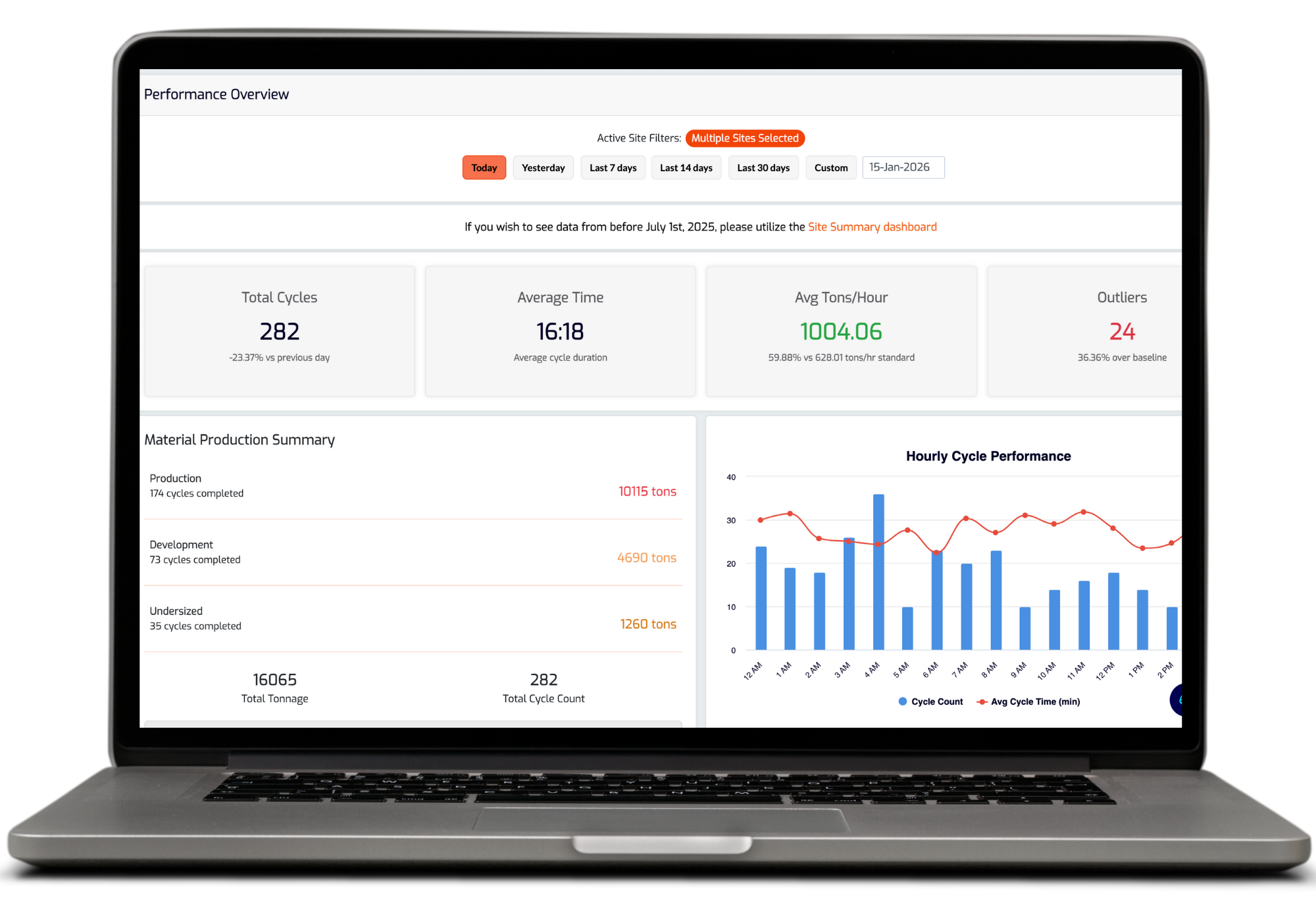 Get real-time visibility into how your site is actually performing. Eliminate delays, reduce cost-per-ton, and keep production on pace while the shift is still running.